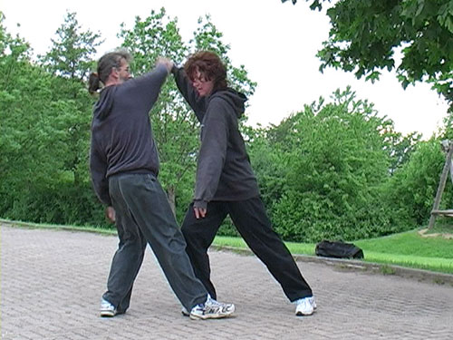 Außerdem werden die „Bilder“ der Kampfkunstformen im Sinne ihrer Verteidigungsidee zu zweit geübt. Dies führt zu mehr Bewegungsverständnis und -ausdruck.