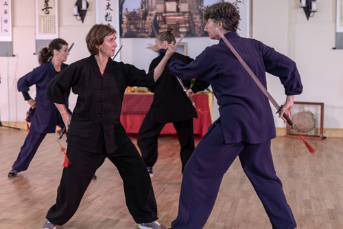 Die "Wudang Xingjian"–Schwertform geht direkt auf den Begründer des Taijiquan, Zhang San Feng, zurück. Das heißt, dass oben genannte Prinzipien des Taijiquan in sie einfließen. Der Umgang mit einer Waffe erhöht allerdings die Anforderungen, weswegen es ratsam ist, in der Kampfkunst mit dem waffenlosen Üben zu beginnen. Der Unterricht enthält Grundübungen mit Schwert und das Erlernen der Form. Diese Bewegungsform erfordert große Geschicklichkeit und zeigt im Gegensatz zum Taijiquan mehr Dynamik.